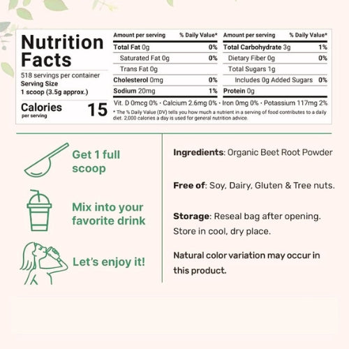 Yes, it’s 100% natural with no artificial ingredients, additives, or preservatives — just pure beet root powder.